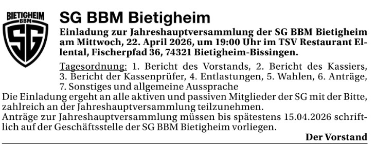 SG Jahreshauptversammlung 22.04.2026